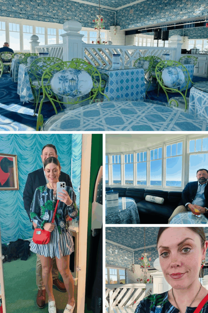 Each room at The Grand Hotel offers its own immersive world, where color, pattern, and light create a distinct mood. The Main Dining Room is vibrant and full of movement, with green and white stripes, coral and yellow florals, and a sky-blue ceiling that feels like daylight painted indoors. The Parlour and Lobby, where afternoon tea is served, glow with layered pinks and reds — soft, romantic, and full of charm. Just steps away, Sadie’s Ice Cream Parlor adds a playful twist with bold houndstooth in red, white, and black — a crisp, nostalgic contrast to the surrounding elegance. The Cupola Bar shifts into multiple shades of blue, accented by hints of green and red in the lighting, creating an atmosphere that feels intimate and dreamlike. Further into the island, Woods Restaurant surrounds you in rich reds, forest greens, and navy, a palette that wraps the room in quiet luxury. These spaces impress visually and shape how you feel, inviting you to move through them with awareness, and to respond with your presence.