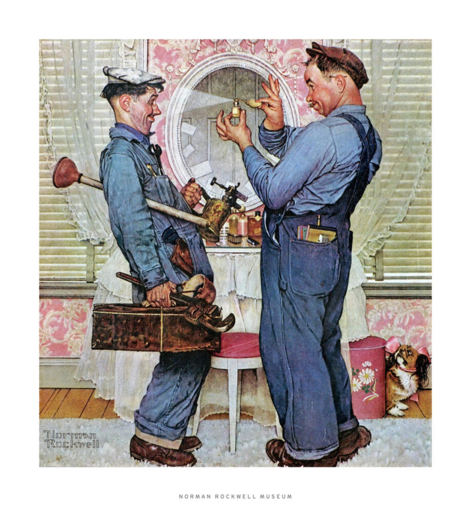 The need arrived in an antique mall. There, among the chipped furniture and unlabeled curiosities, I found a decorative plate bearing one of Rockwell’s images. It was not meant for eating. It existed only to be hung, admired, and kept clean. This struck me as odd. Why take a moment from an ordinary life and preserve it so carefully? What kind of looking did this image, available only on a plate, ask of me?