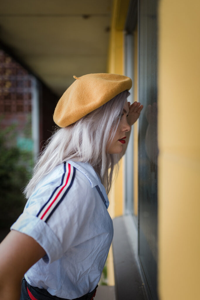 French for “red,” historically used to describe the powdered pigment applied to cheeks.